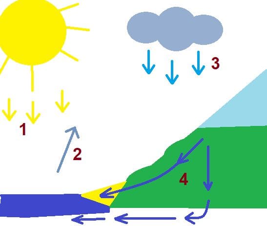 2) Подписали основной источник энергии процесса круговорота воды на Земле. Солнце.