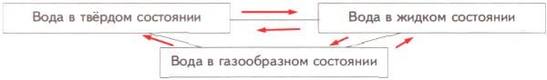 Покажите стрелками, какие переходы из одного состояния в другое возможны для воды.