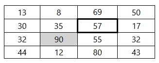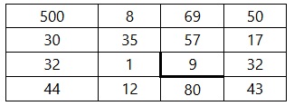Пример входных данных (для таблицы размером \( 4 \times 4 )\):